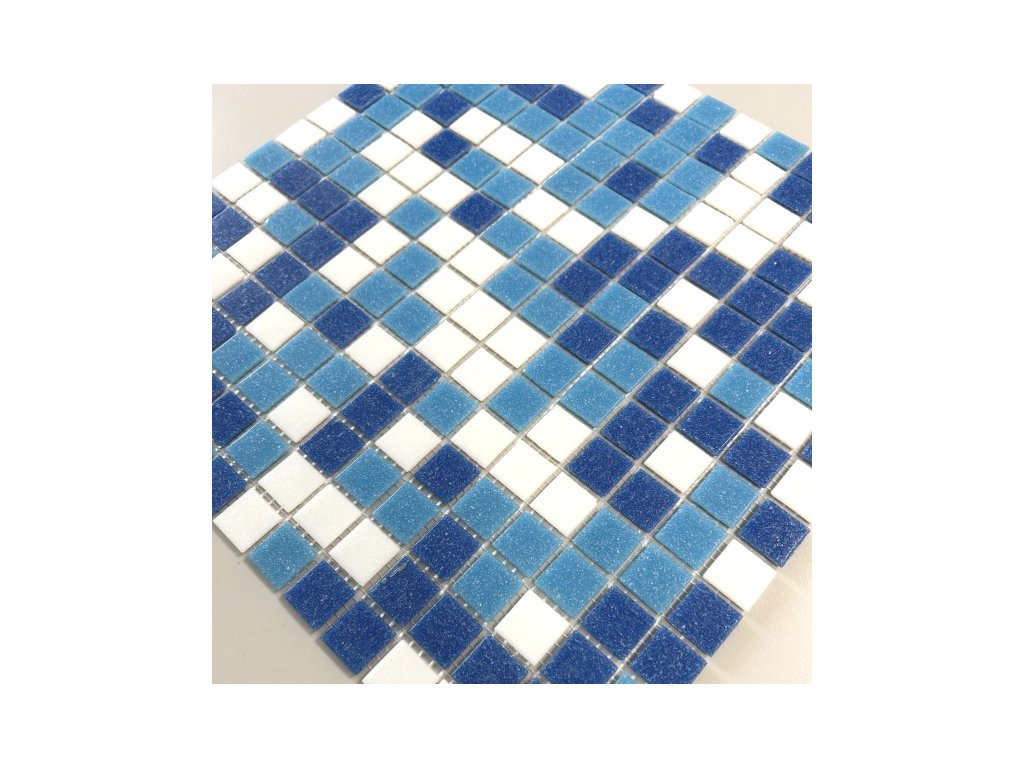 Skleněná mozaika světle modro-bílá bazénová